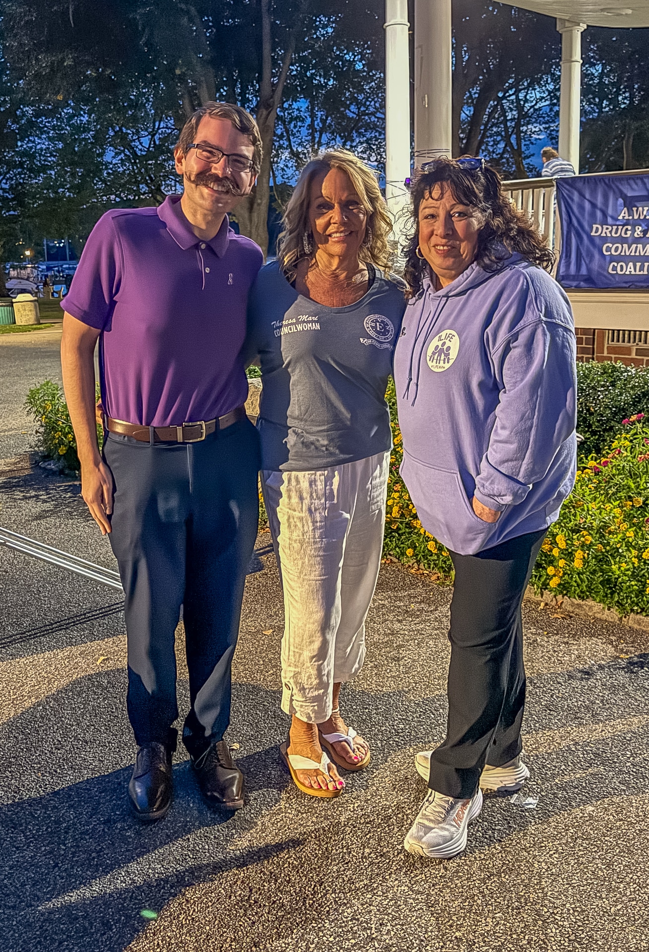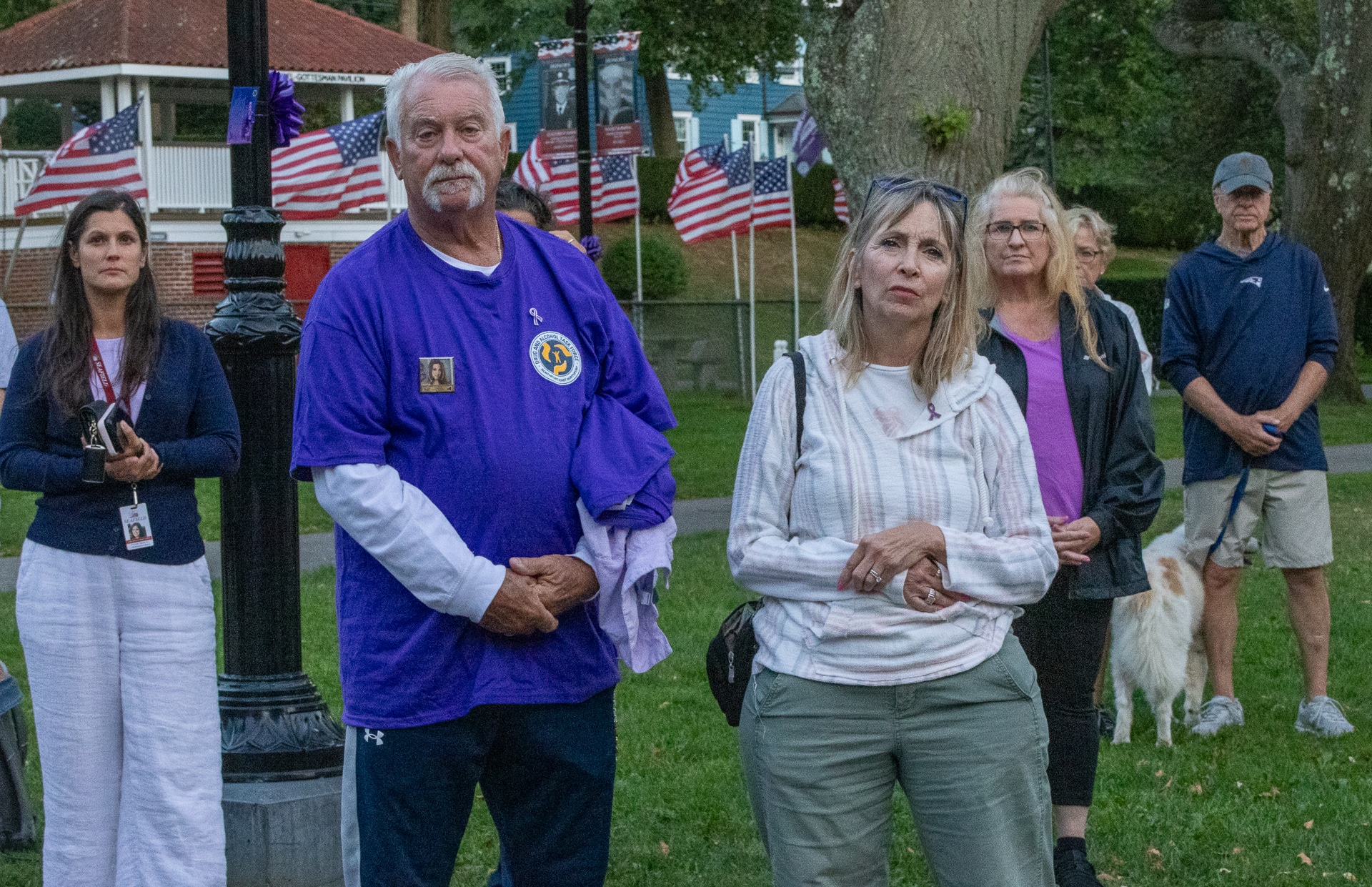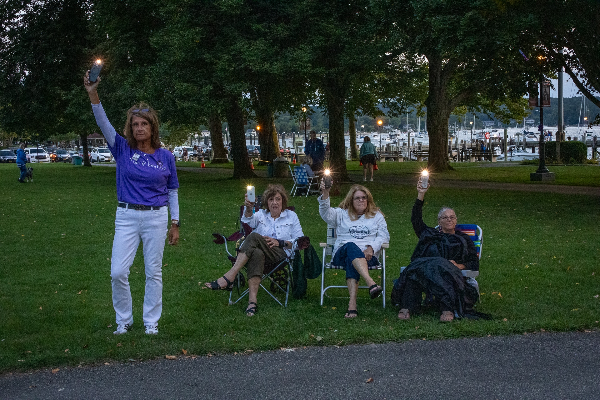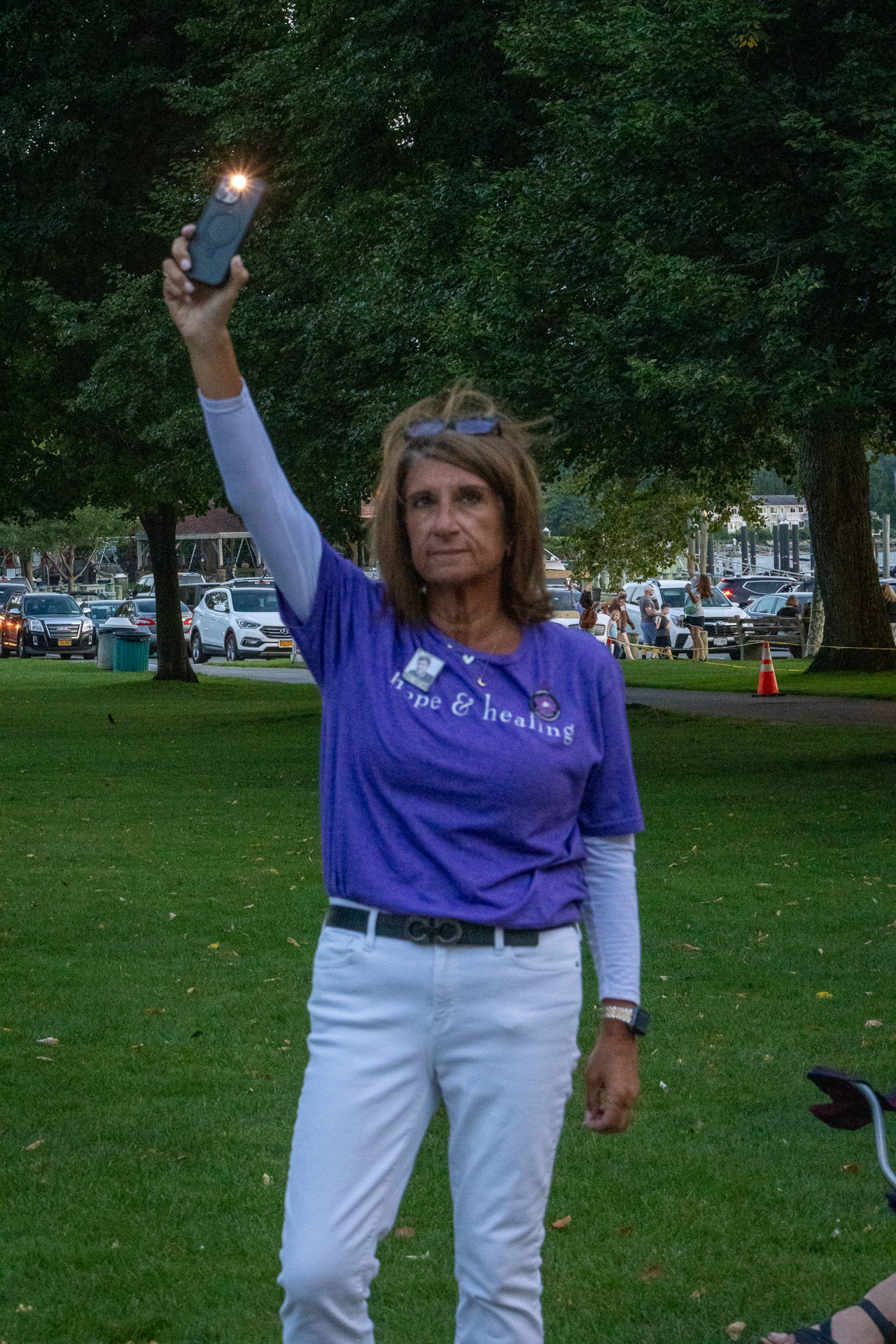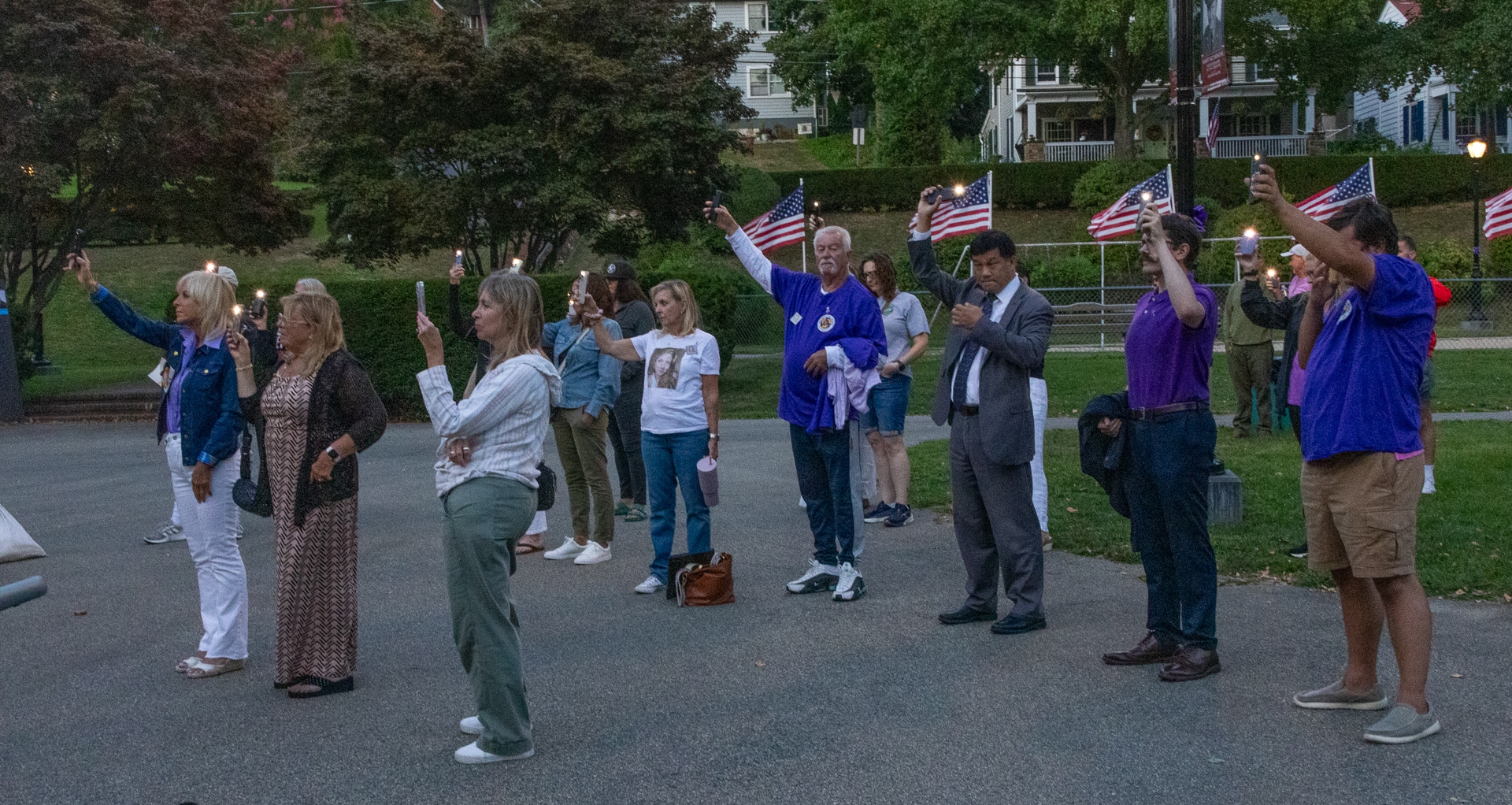 NORTHPORT, NY – Today, August 31, 2025, is International Overdose Awareness Day. Our town’s 6th Annual Night of Remembrance Candlelight Vigil was held on Thursday, August 28, 2025 from 7:00PM to 9:00PM in Northport Village Park, organized by the Northport-East Northport Drug and Alcohol Task Force – now “A.W.A.R.E. Drug & Alcohol Community Coalition”. Attendees slowly arrived in ones and twos, quietly setting up folding chairs or gathering at the edge of the grass, just “being” there for a few minutes as a local musician played his guitar. When ready, we each stepped forward in our own time to reach out to another – a touch on the arm, a smile, a hug. “Good to see you.” and “How are you?” conveyed a far deeper meaning than the words used. Every attendee lost someone they love to a drug overdose.