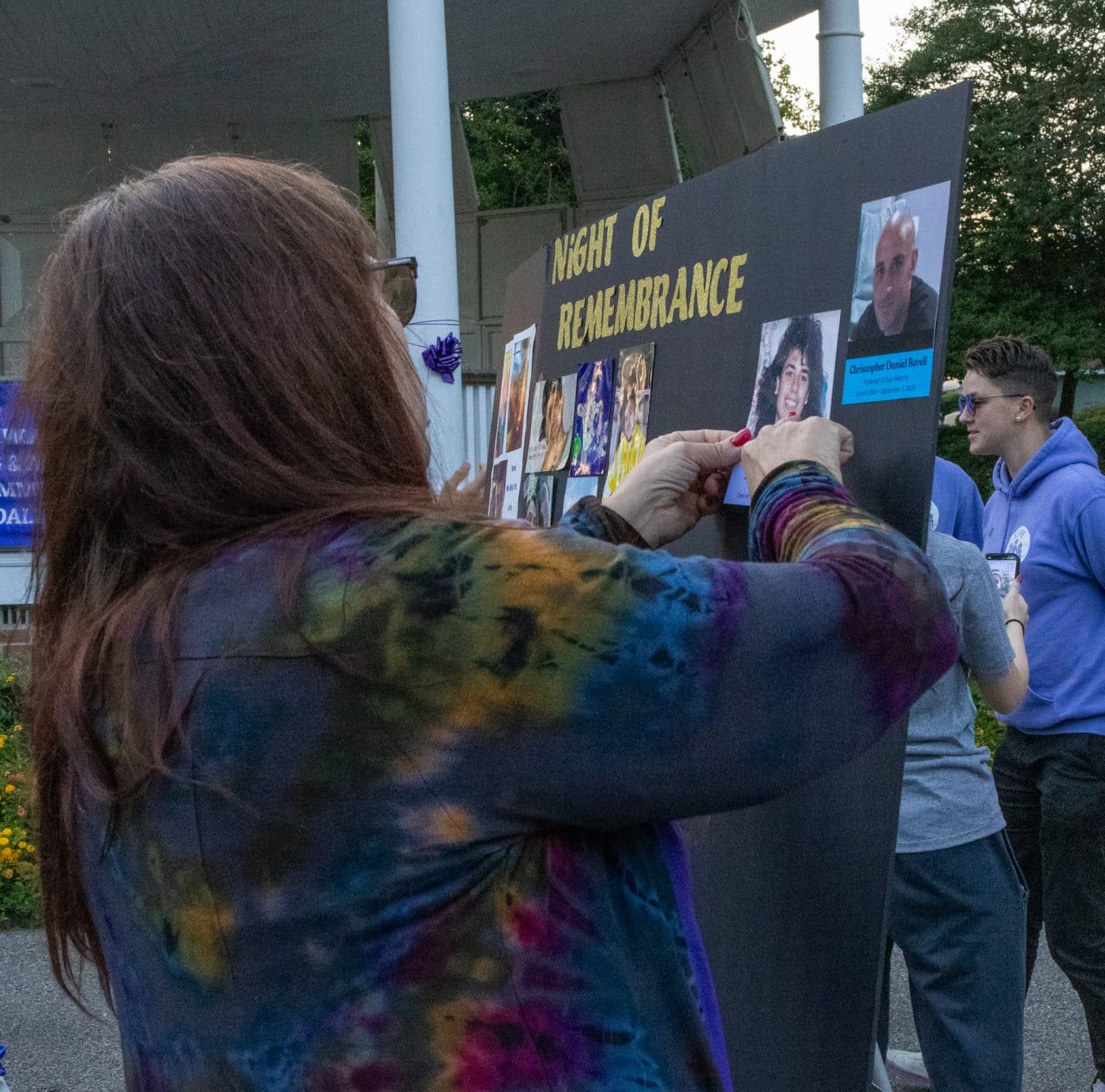 “Remembering……those we have loved, our sons, daughters, brothers, sisters, relatives and friends we have lost to overdose. I miss you my son, every minute of every day, I love you, and I vow to fight the system, the stigma, so that those who are caught in the hell of addiction may find hope and healing and Recovery. That ALL who want the help and treatment can access it regardless of ability to pay, While I cannot attend tonight, thank you to June Hunt Margolin for bringing and putting up the picture of Christopher Revell – Diane Schaber, August 28, 2025, Facebook Post.