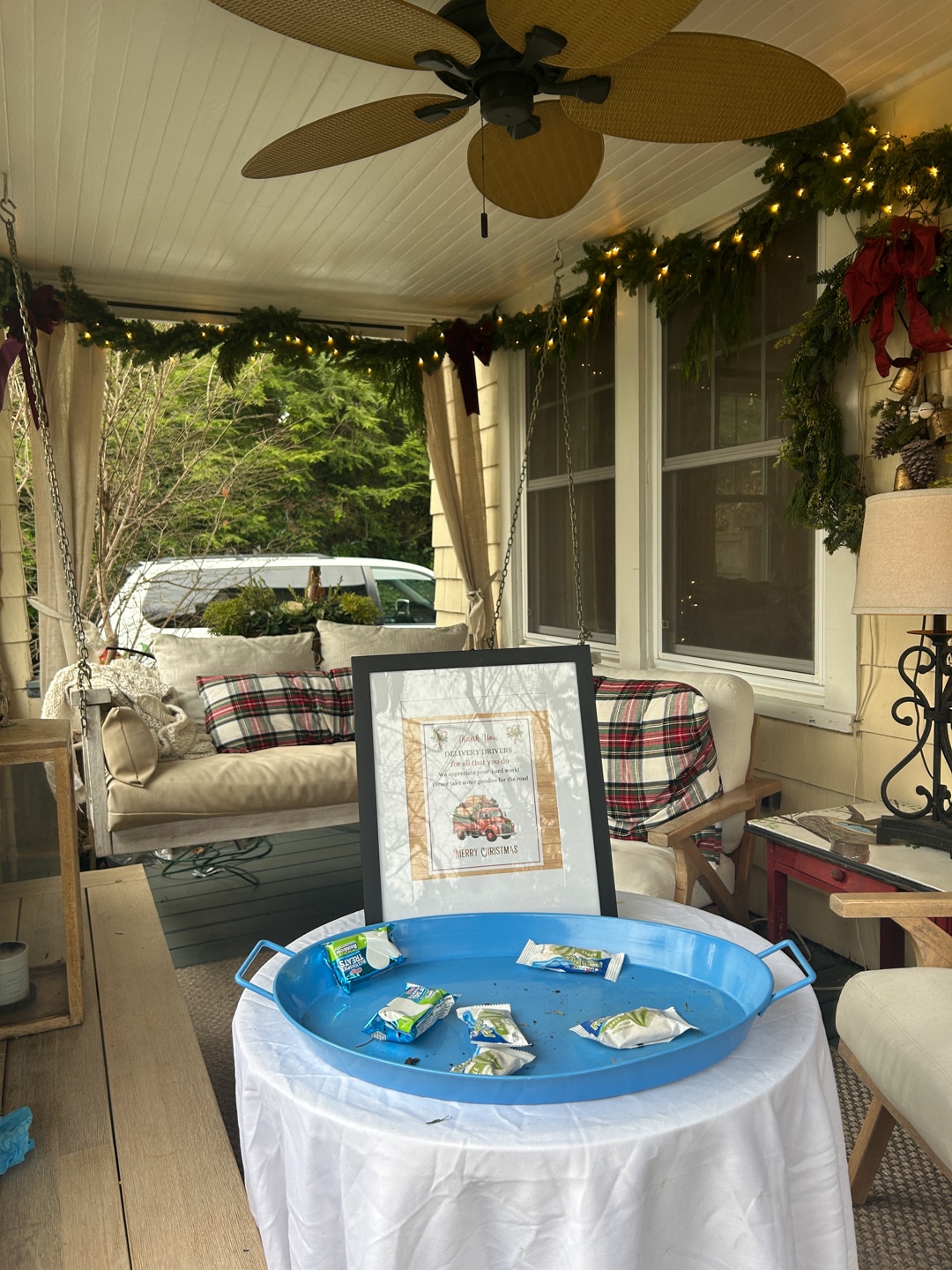 The self-guided tour begins at the Conklin Barn, where visitors sign in, pick up their maps, and enjoy a generous spread of cookies, hot chocolate, coffee, and tea. A raffle of beautiful items adds to the excitement before everyone sets out to explore the featured homes.