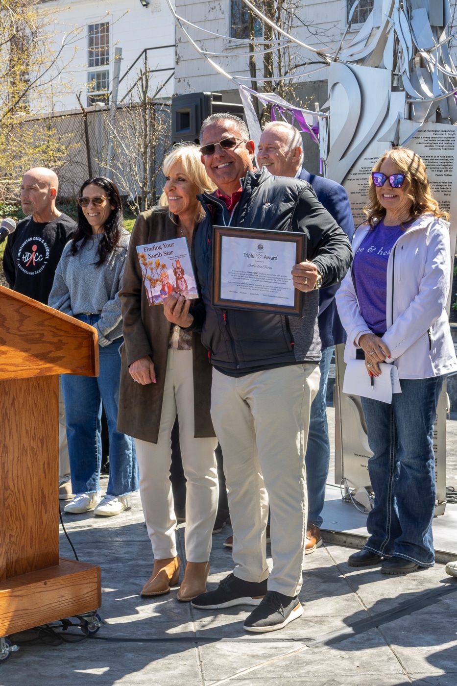 Hosted by Councilwoman Theresa Mari, artist Susan Buroker, and the Town of Huntington Opioid & Addiction Task Force, the event marked the continued presence of the sculpture installed last summer, now a visible symbol for individuals and families affected by substance use disorder.