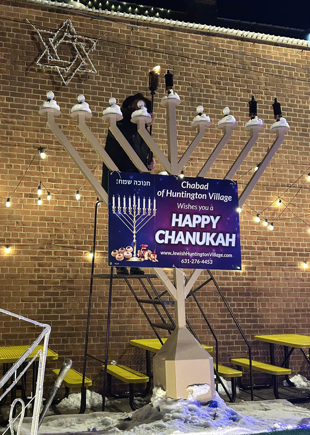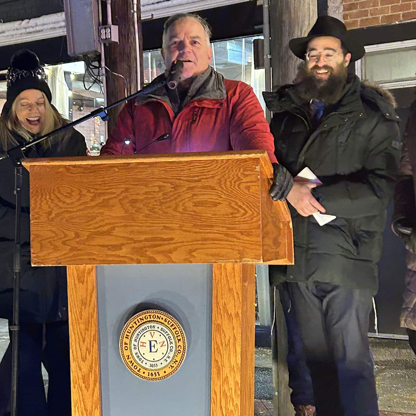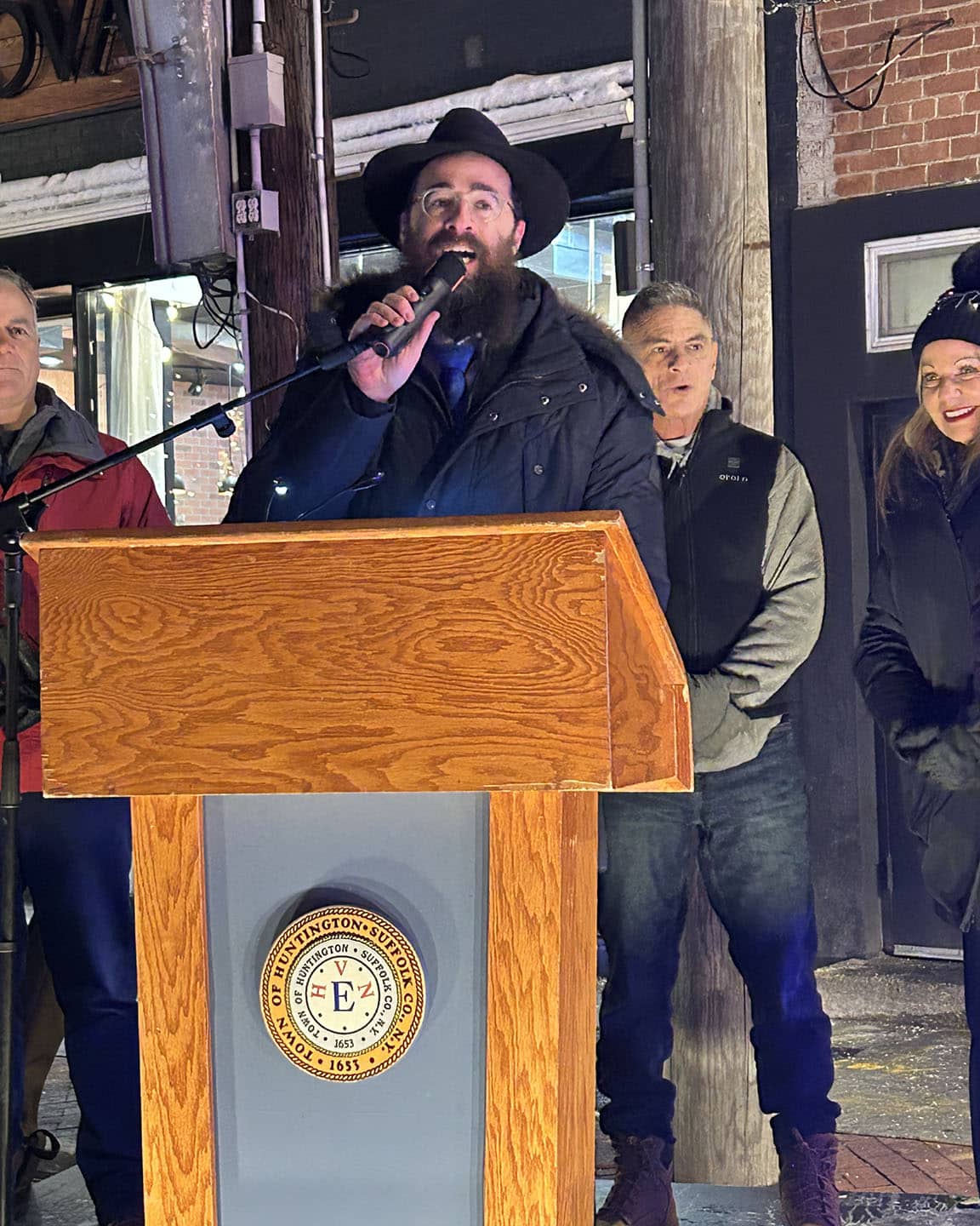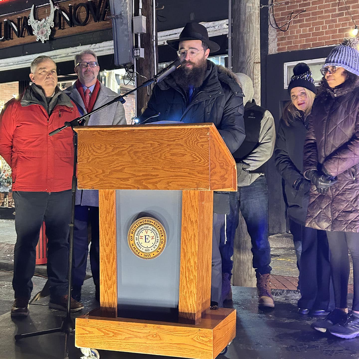 He recounted the story of Hanukkah, when a single small jug of oil, found against all odds, burned not just for eight days, but symbolically for more than 2,000 years. That same light, he said, was being kindled again in Huntington.