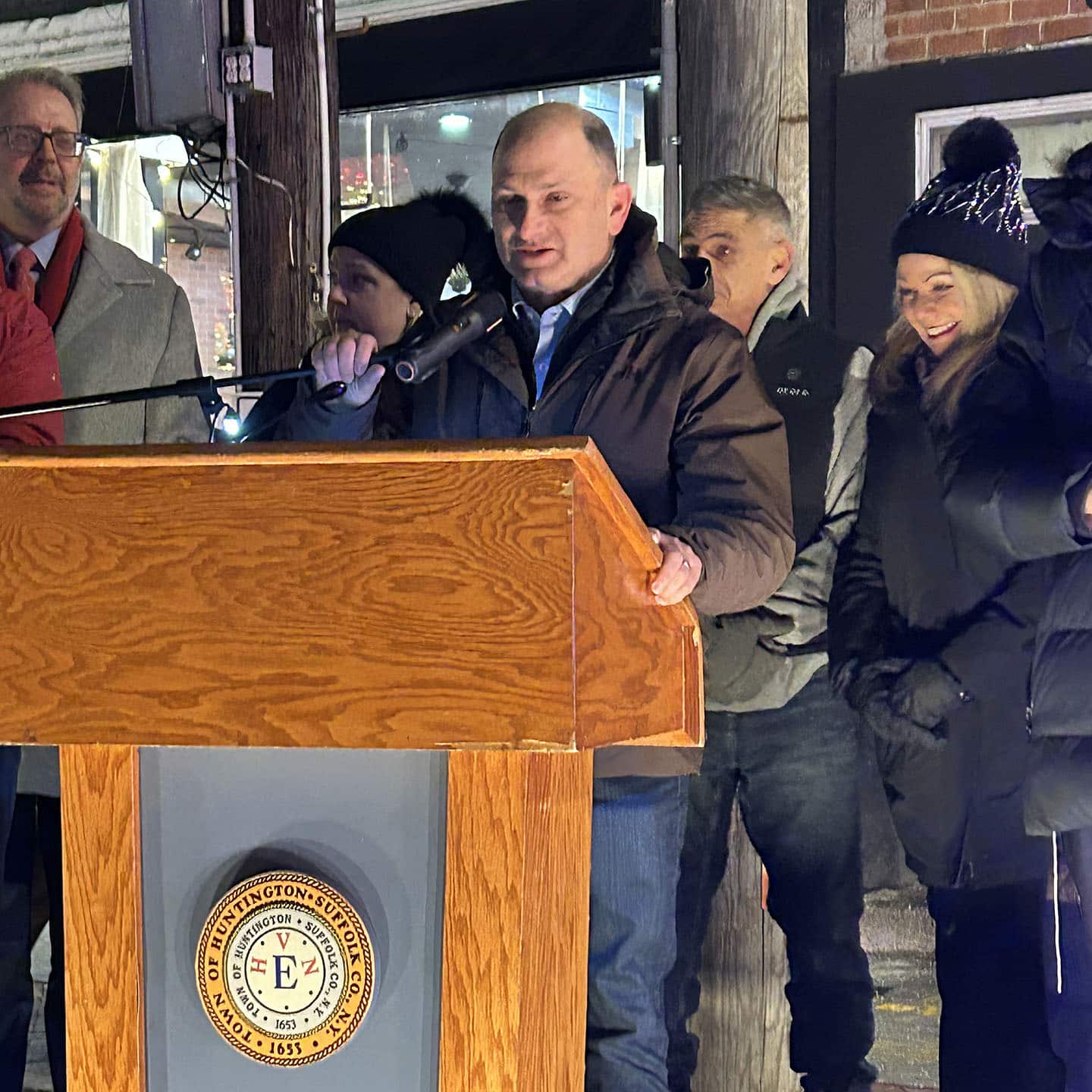On the second night of Hanukkah, residents gathered in Huntington Village for the annual Huntington Menorah Lighting, braving cold temperatures to stand together in warmth and solidarity. Before the ceremony began, Huntington Supervisor Ed Smyth asked attendees to pause for a moment of silence to honor the victims of recent acts of violence against the Jewish community, including the tragic events in Australia, and at Brown University.