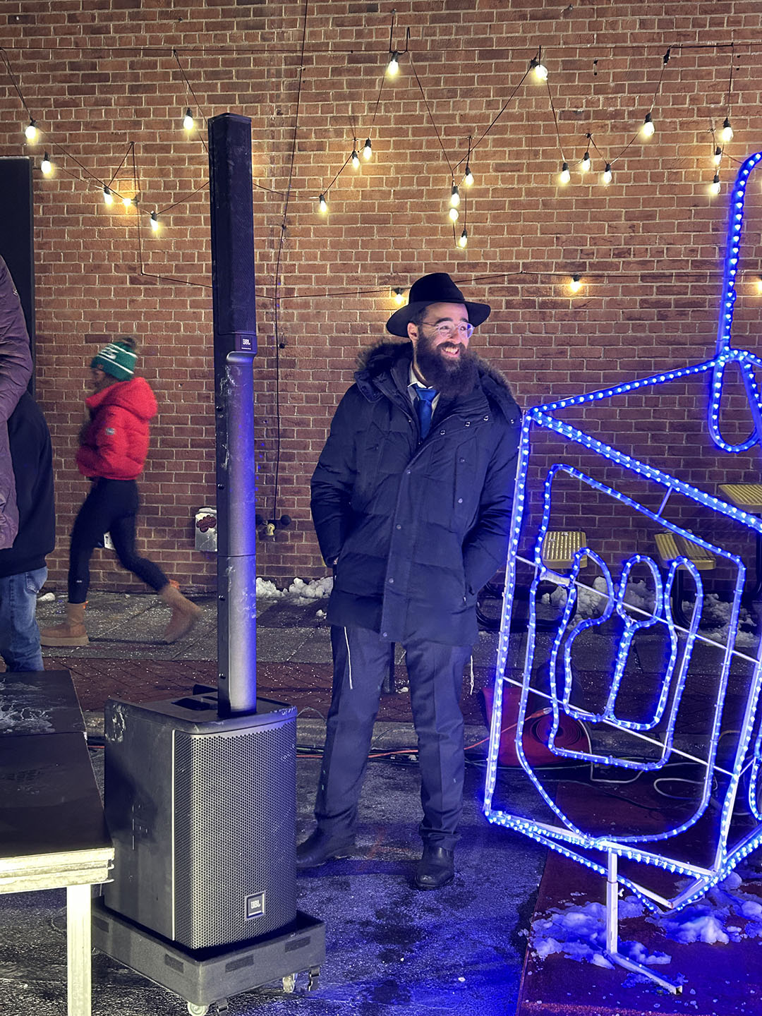 To symbolize unity and safety, attendees were given glow sticks, representing the Shamash, the helper candle. Together, the crowd cracked the glow sticks and held them high, creating a visual expression of shared strength and togetherness.