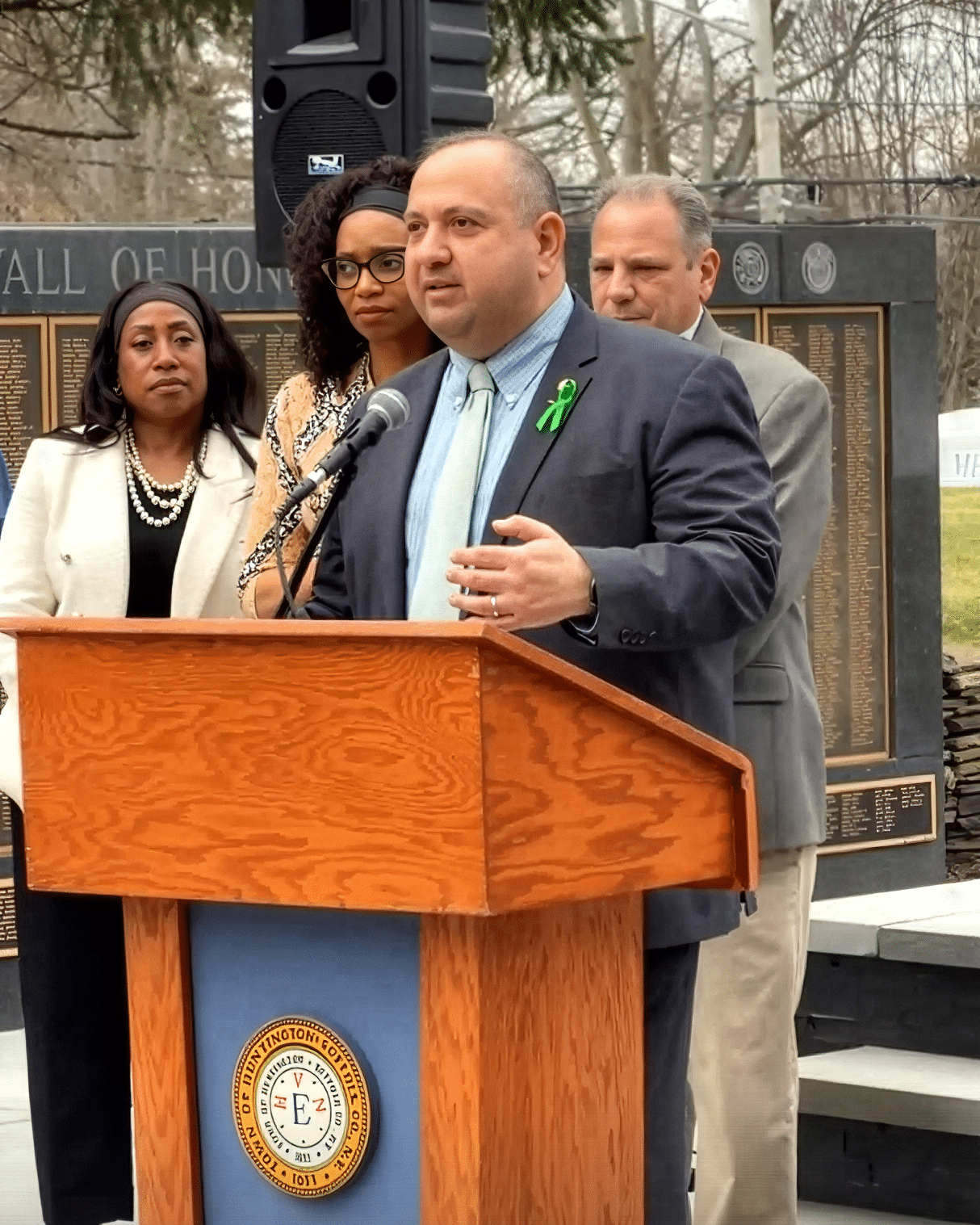 The Town of Huntington marked the start of Donate Life Month on Wednesday with a flag raising ceremony at Veterans Plaza, bringing together elected officials, nonprofit leaders, and residents whose lives have been directly impacted by organ donation.