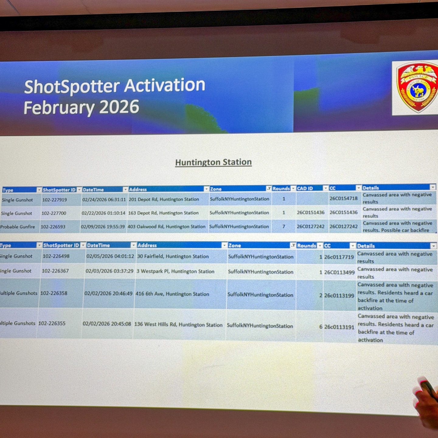 🎯 SHOT SPOTTER: 7 activations with Negative Results.