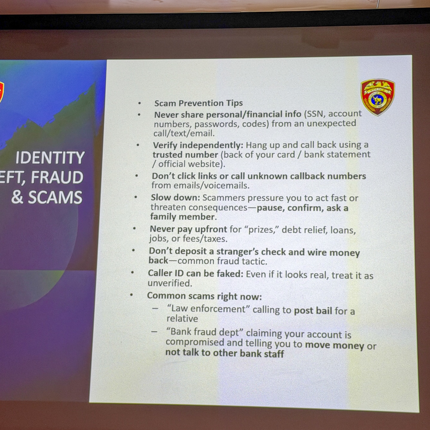 🚓 REMINDERS ABOUT SCAMS: Gift Cards = Scam. Beware of Mail Theft and Check Washing. Phone call of relative arrested and asking you to post Bail Money = Scam. Pop up on Computer (Virus Protection) do NOT let anyone remotely access your home computer! Beware of known phone numbers being spoofed for caller ID = Latest are SCPD and NY State Police numbers with callers asking for money = SCAM! Call from “Bank Representative” to withdraw all your money – DO NOT speak with bank employees as they may be in on it – Call the corporate phone number.