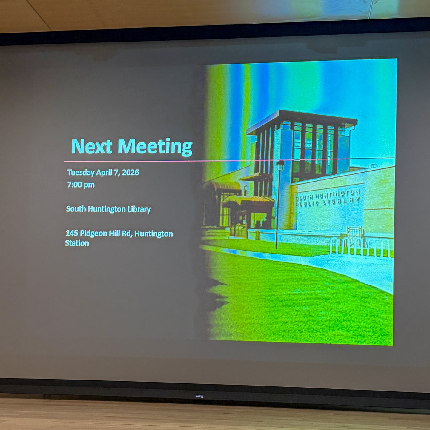 🚓 NEXT MEETING: Tuesday, April 7, 2026 at 7:00PM at South Huntington Public Library, 145 Pidgeon Hill Road, Huntington Station, NY.