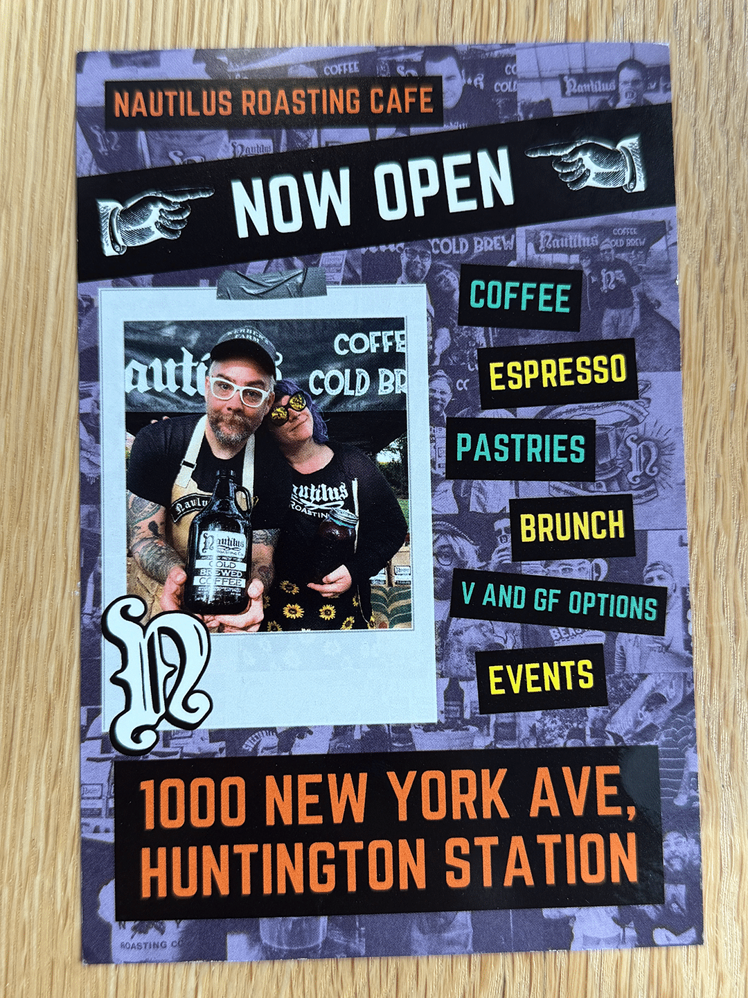 We had never been here before. Nautilus Roasting Co. opened about a year ago at 1000 New York Avenue, Unit A, Huntington Station, and like so many places in our own town, it somehow stayed just outside our routine – until now.