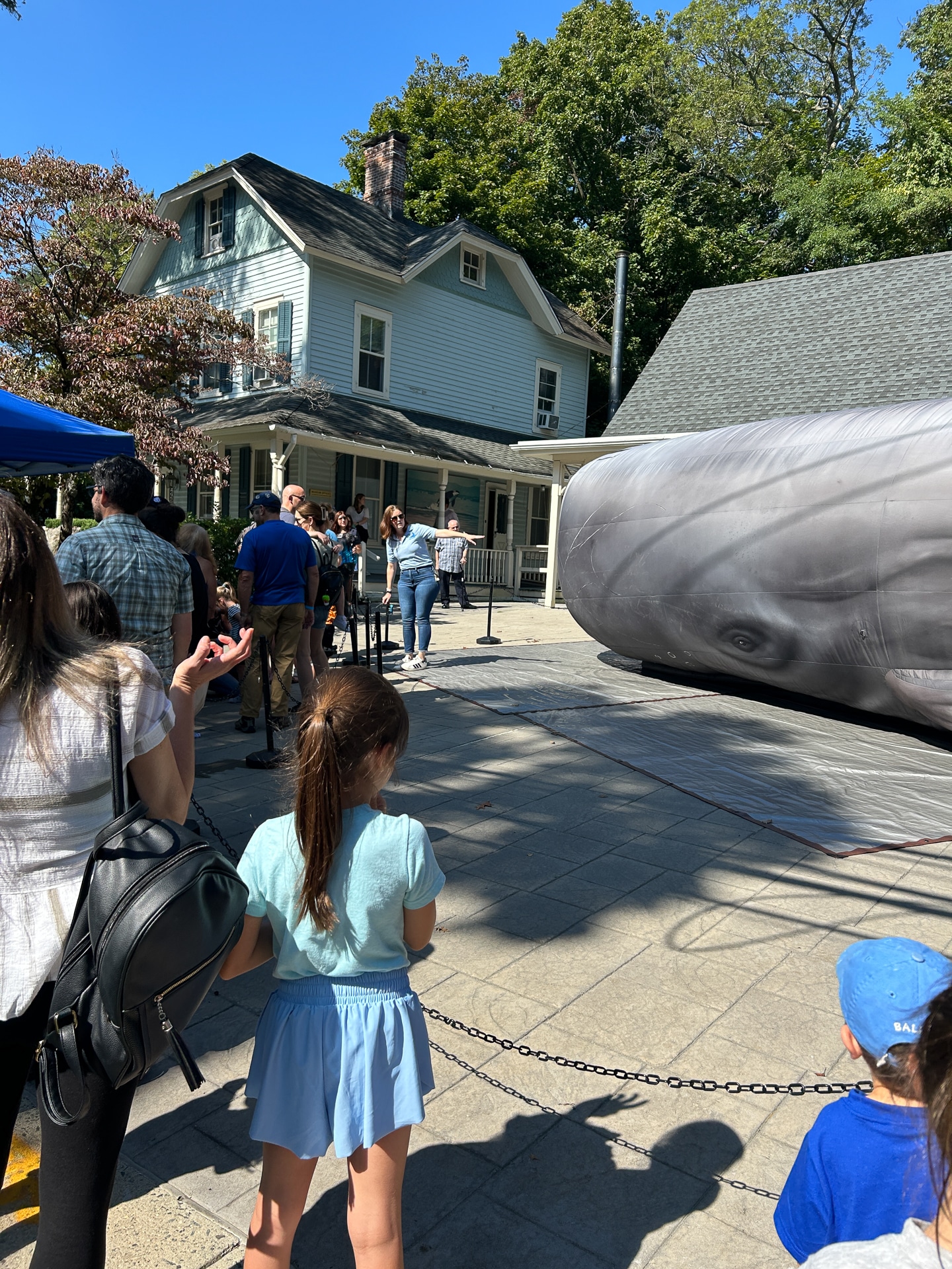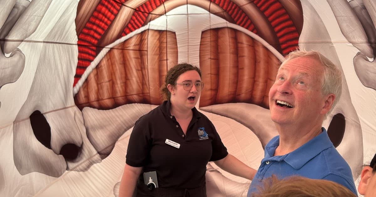 Adding to the educational experience, the inflatable whale was designed with realistic scars – including marks from entanglement and propeller strikes – to highlight both natural features and human impacts on whale populations. The initiative connects directly to the region’s history, as Cold Spring Harbor was once a hub of Yankee whaling in the 1800s.