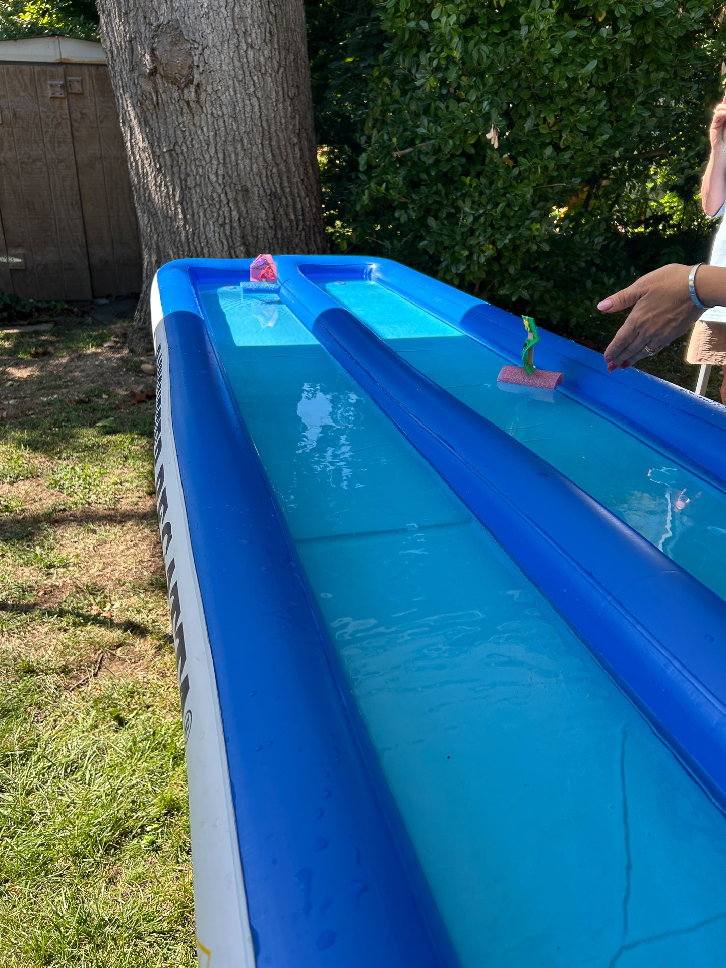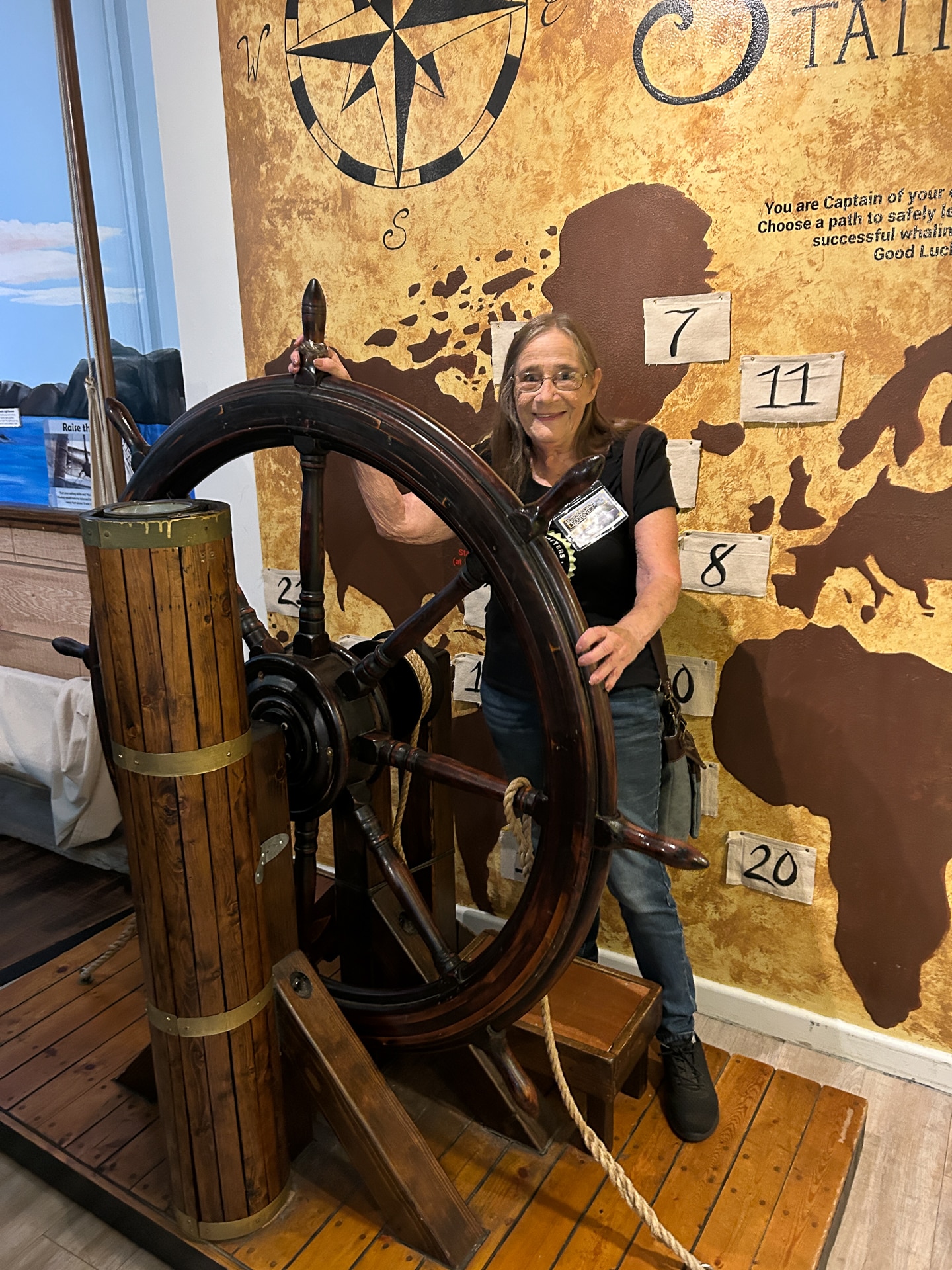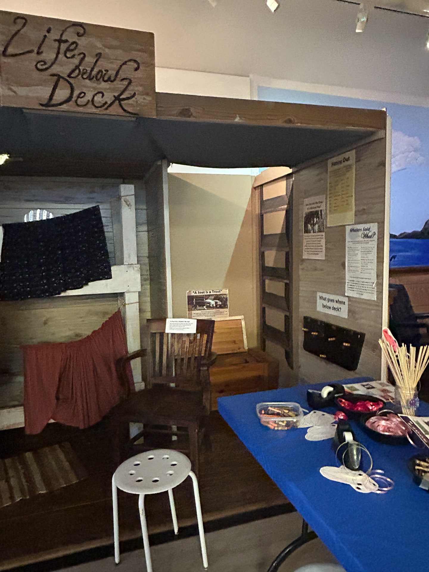 Harpoon Throwing (pool noodle) for “blubber” (container of slime) was outside behind the Museum where a Museum Educator held an authentic whaling harpoon for guests to feel and hold. The Boat Racing tent next door had guests building custom boats with pool noodle pieces, popsicle sticks, and foam shapes that they could race in 2 lanes of an inflatable pool. Yes, Diane’s boat crushed June’s for well-earned bragging rights.