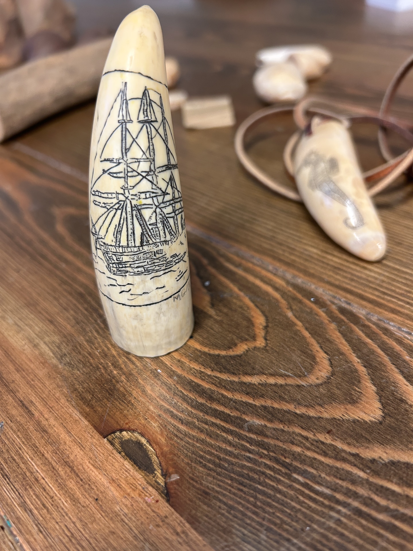 Learning about carving Scrimshaw from the Museum Board Member and Artisan. - Great Whale Takeover.