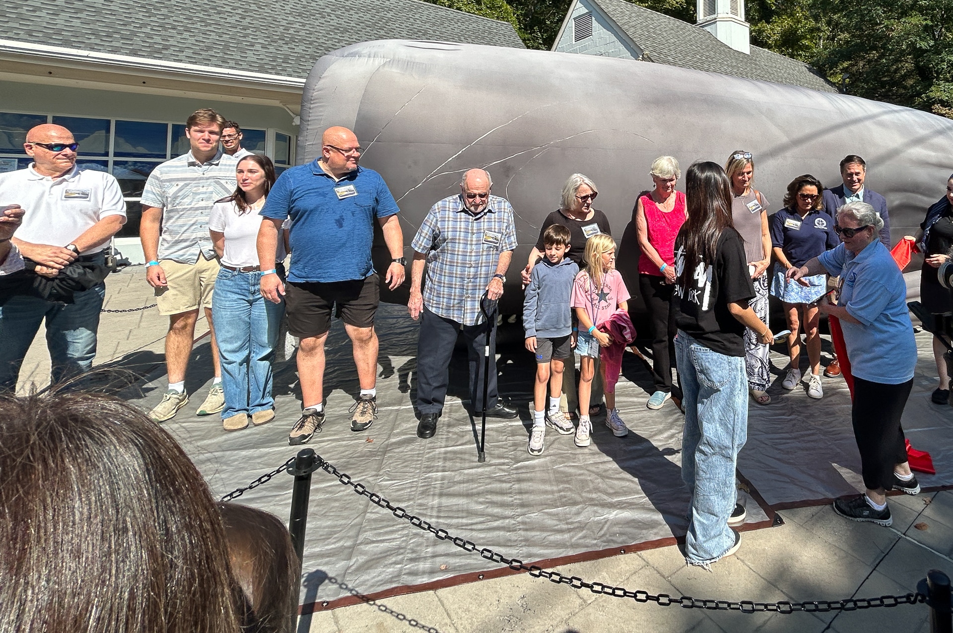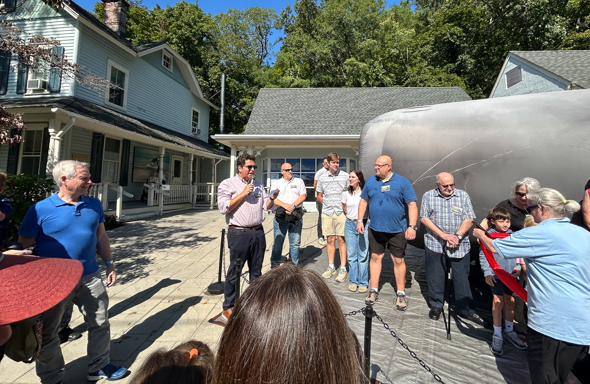 The Whaling Museum and Education Center of Cold Spring Harbor unveiled an exciting new addition this past weekend – a massive, life-sized inflatable sperm whale. At 45 feet long and the only one of its kind, the whale drew crowds for a special ribbon-cutting ceremony attended by Suffolk County Legislator Stephanie Bontempi, Chief of Staff to Huntington Supervisor Ed Smyth Michelle McCarthy, Museum Board Members and local supporters.