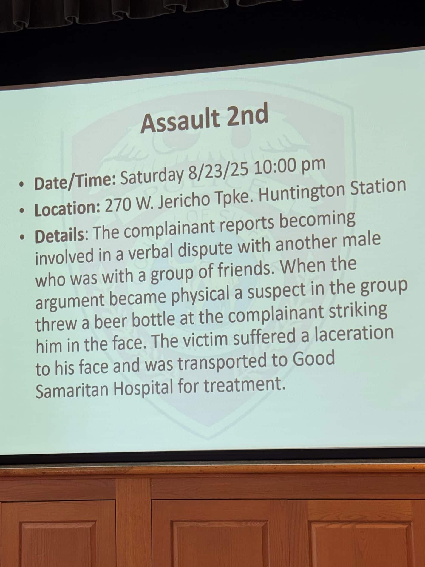 🚓 ASSAULT 2ND on W. Jericho Turnpike, Huntington Station – Argument, beer bottle thrown.