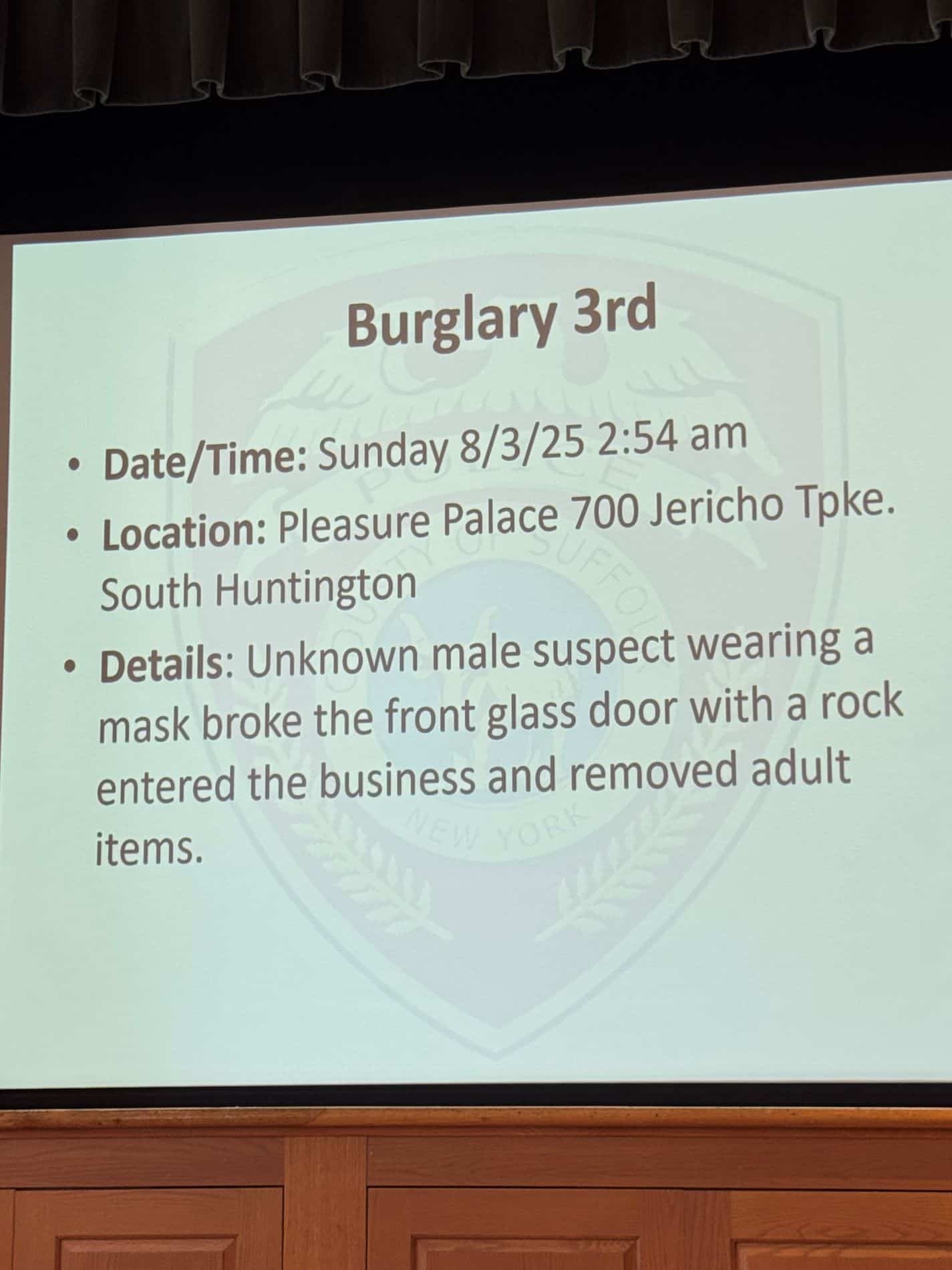 🚓 BURGLARY 3RD: Pleasure Palace, Jericho Turnpike, South Huntington. Adult items stolen.