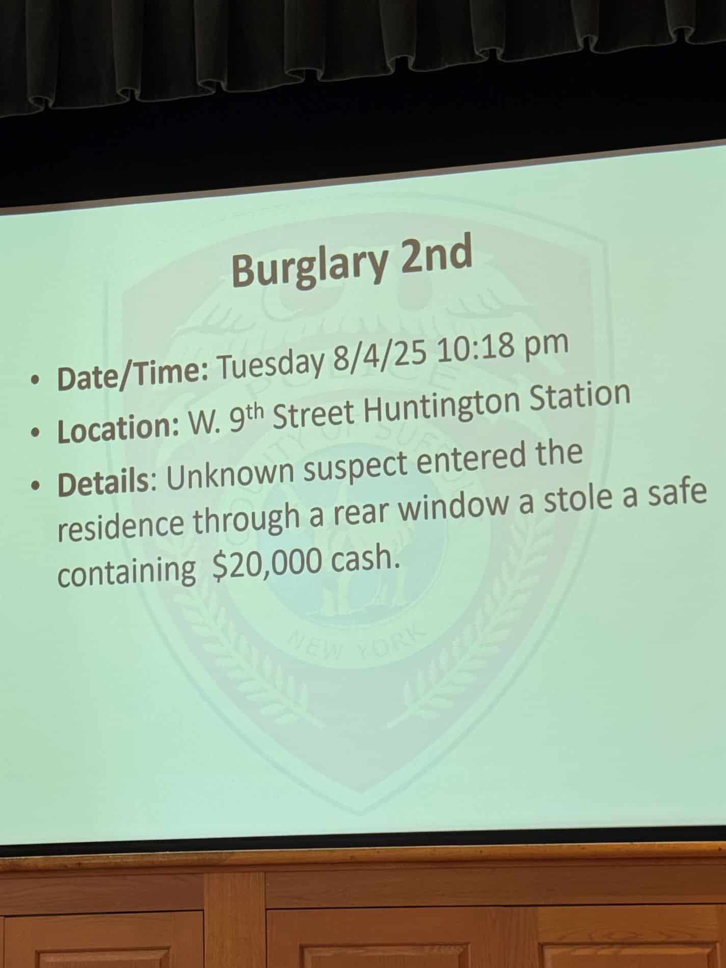 🚓 BURGLARY 2ND: W. 9th St., Huntington Station. $20K stolen.