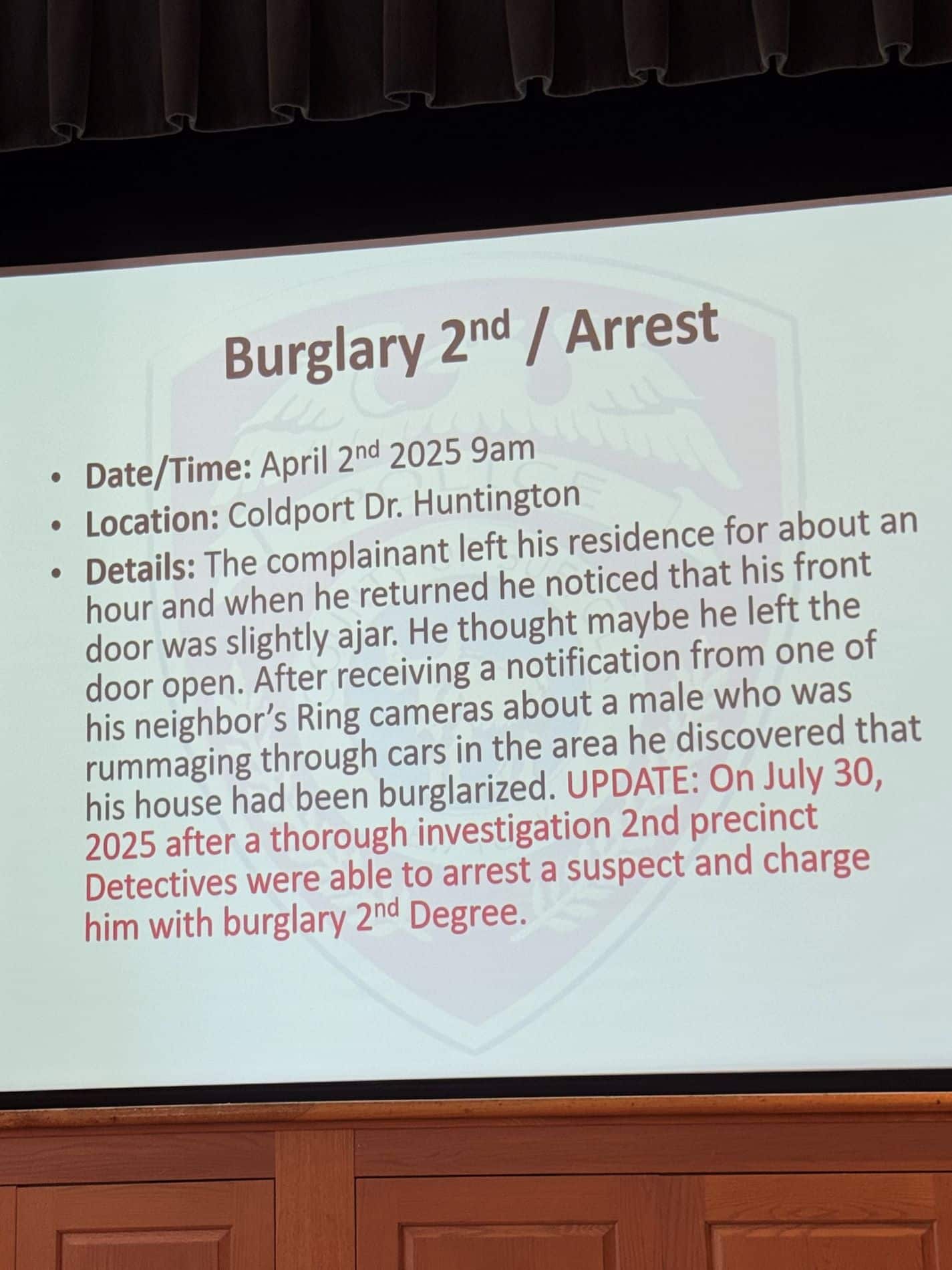🚓 BURGLARY 2ND: Coldport Drive, Huntington. Home invasion that resident realized later. Arrest made.