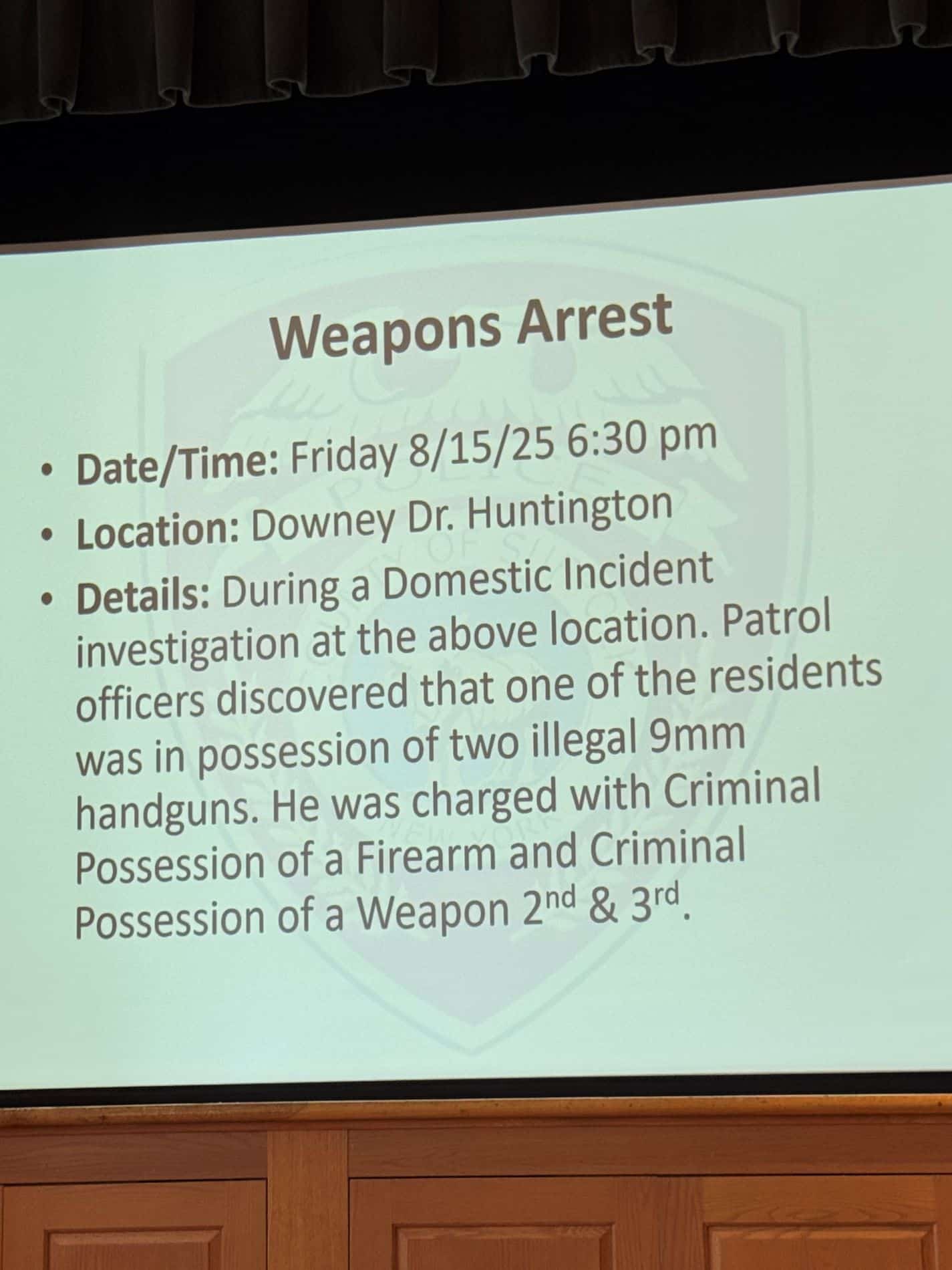 🔫 WEAPONS ARREST – Downy Drive, Huntington. Domestic Dispute – 2 weapons found. Arrest made.