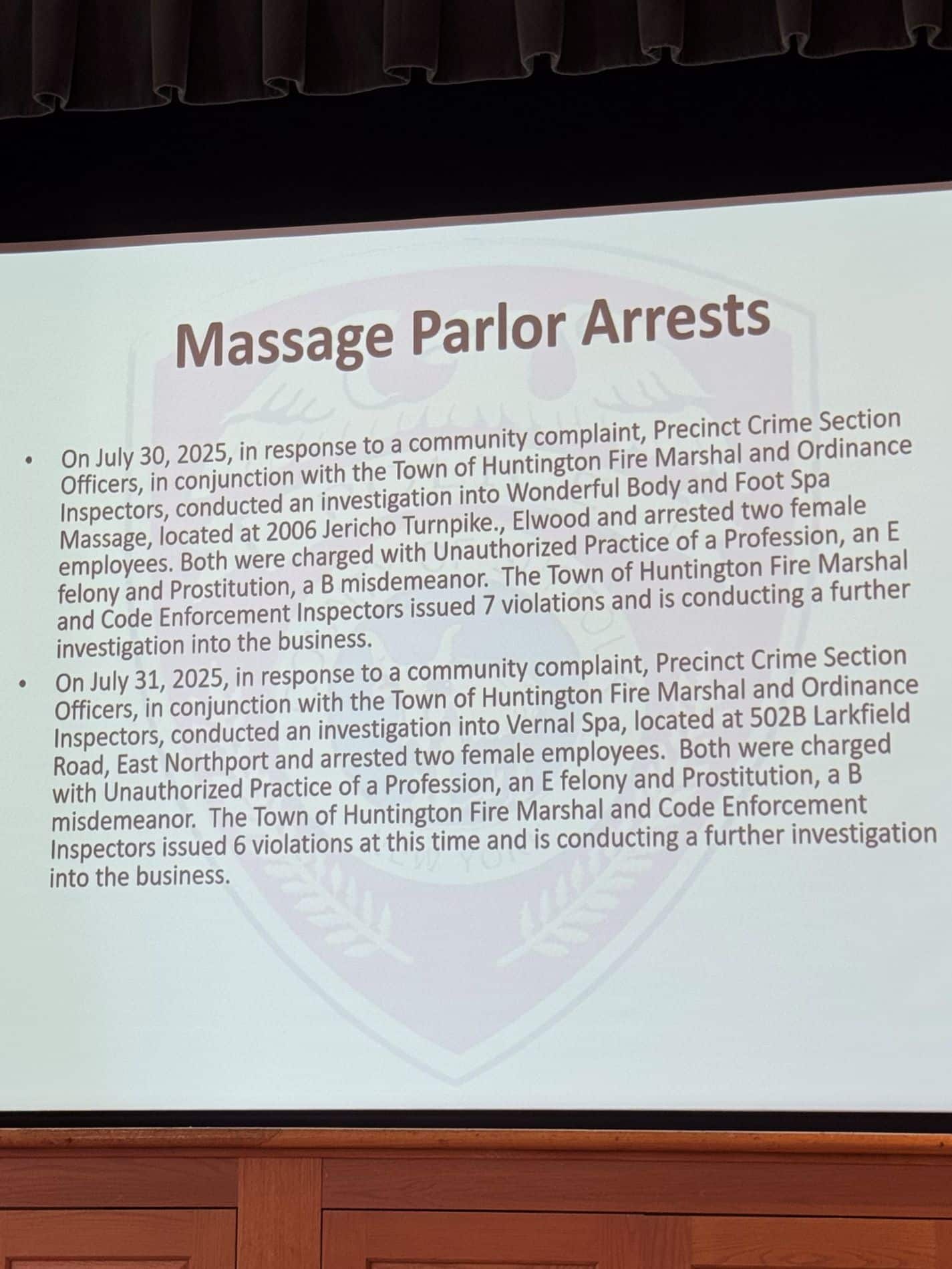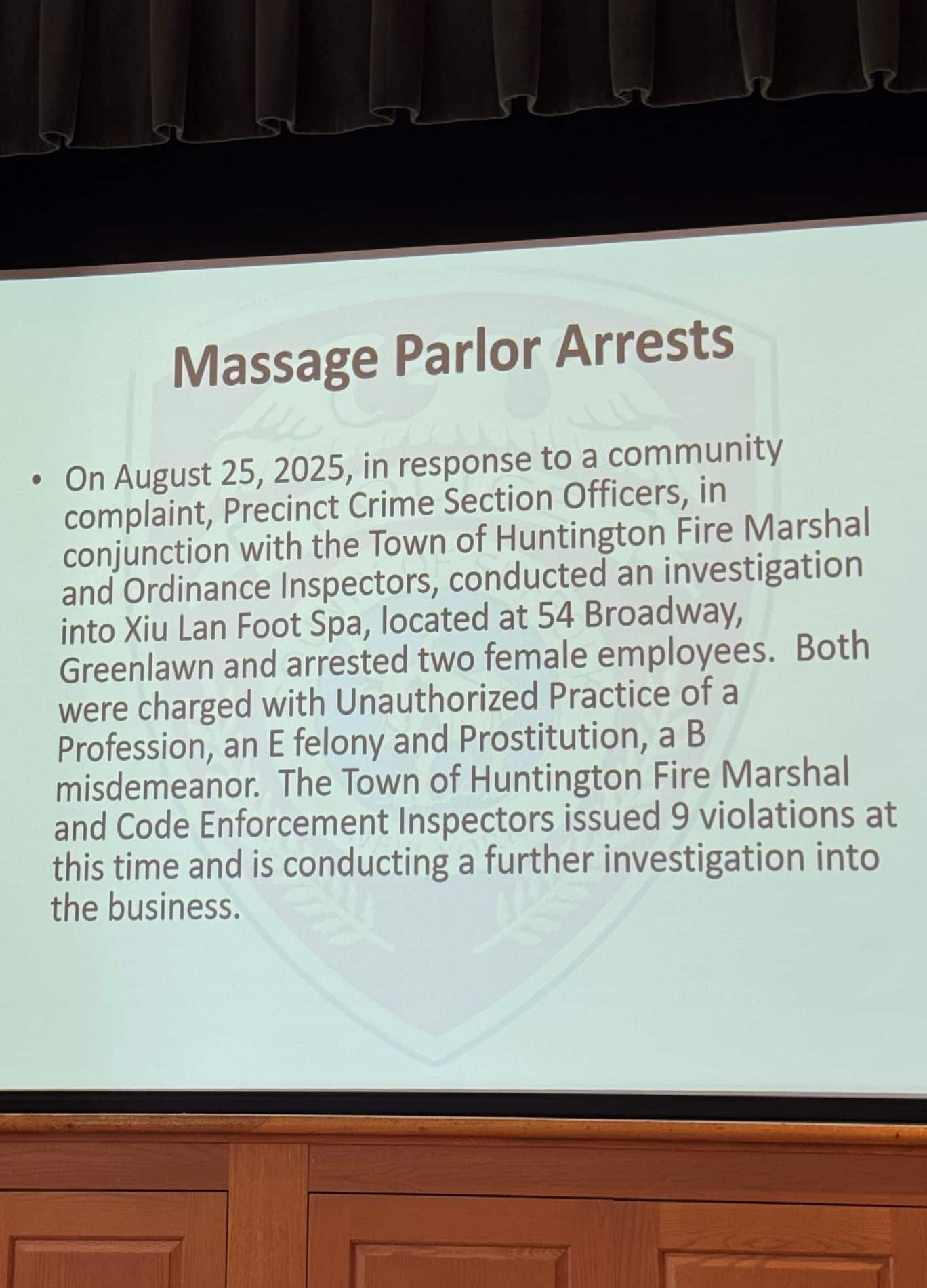 🚓 MASSAGE PARLOR ARRESTS with Town of Huntington – Elwood, East Northport, Greenlawn. 6 Arrests made.