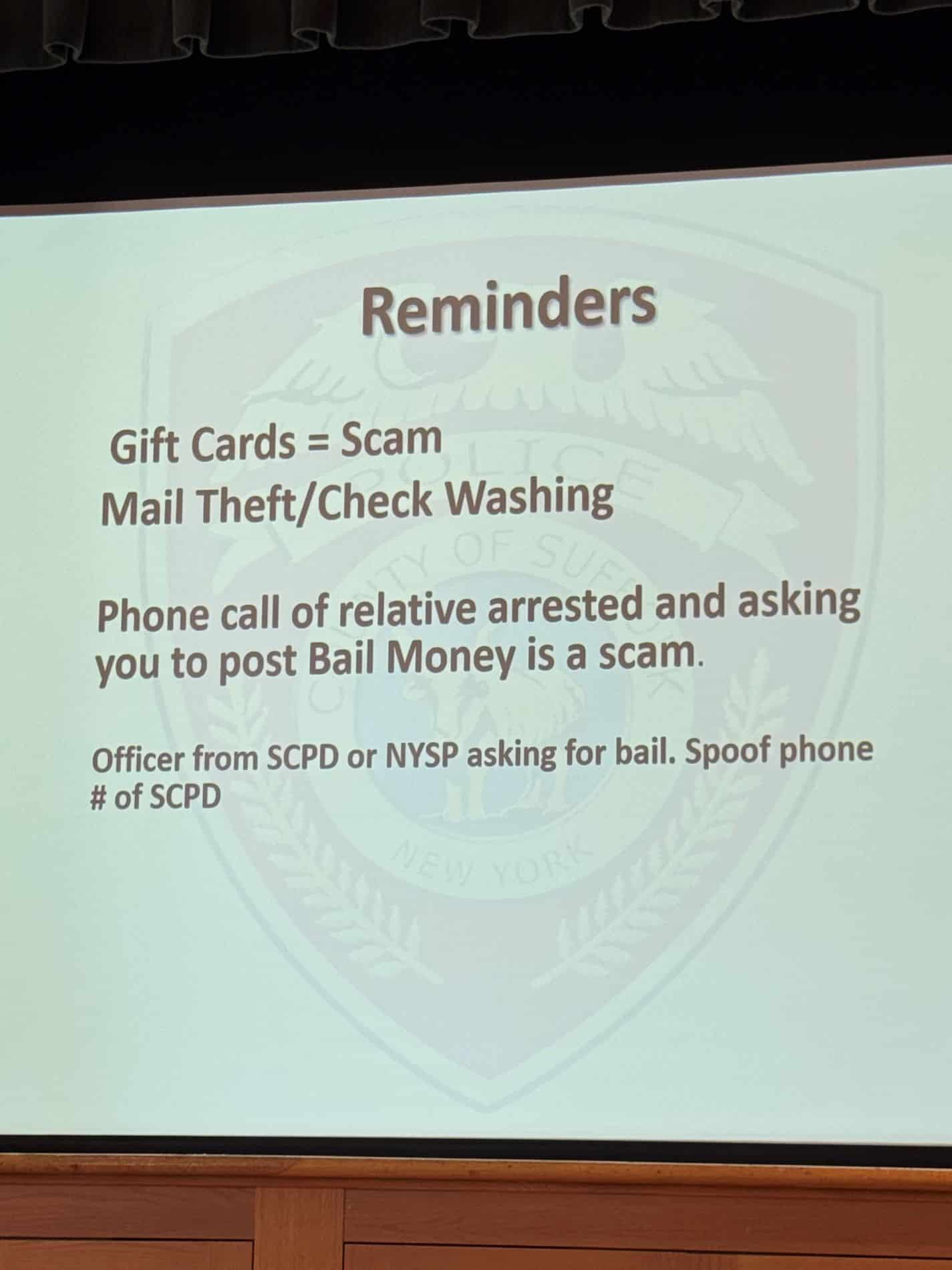 🚓 REMINDERS ABOUT SCAMS: Gift Cards = Scam. Beware of Mail Theft and Check Washing. Phone call of relative arrested and asking you to post Bail Money = Scam. Beware of known phone numbers being spoofed for caller ID = Latest are SCPD and NY State Police numbers with callers asking for money = SCAM!