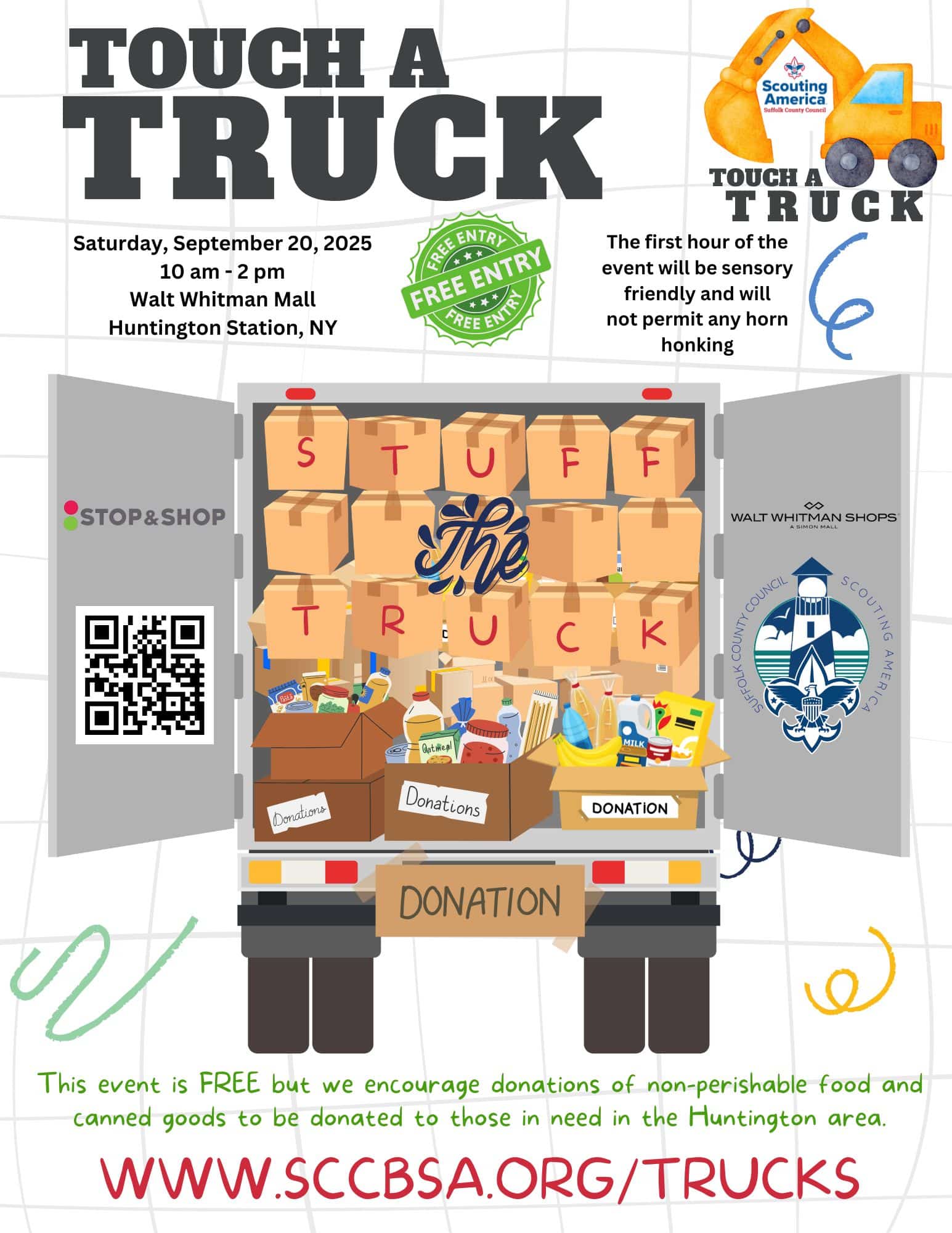 HUNTINGTON STATION, NY – If you live near the Walt Whitman Shops in Huntington Station, you may have heard quite a commotion on Saturday, September 20. The sounds of machinery, sirens, horns, bells, music, jingles, and cheering was music to the ears of the hundreds of children and families who spent their afternoon at Touch a Truck, hosted by the Suffolk County Council of Scouting America (formerly known as Boy Scouts of America).