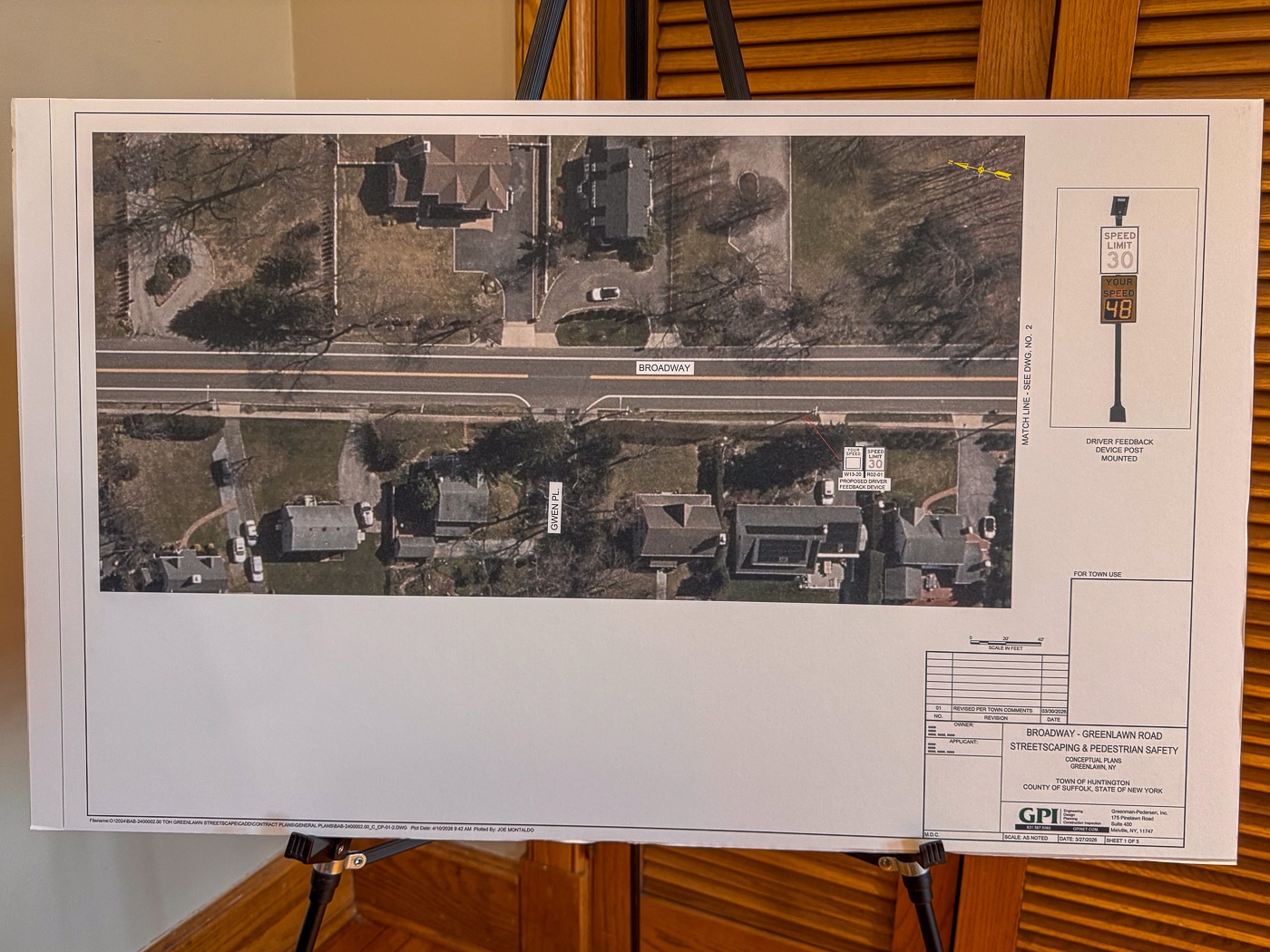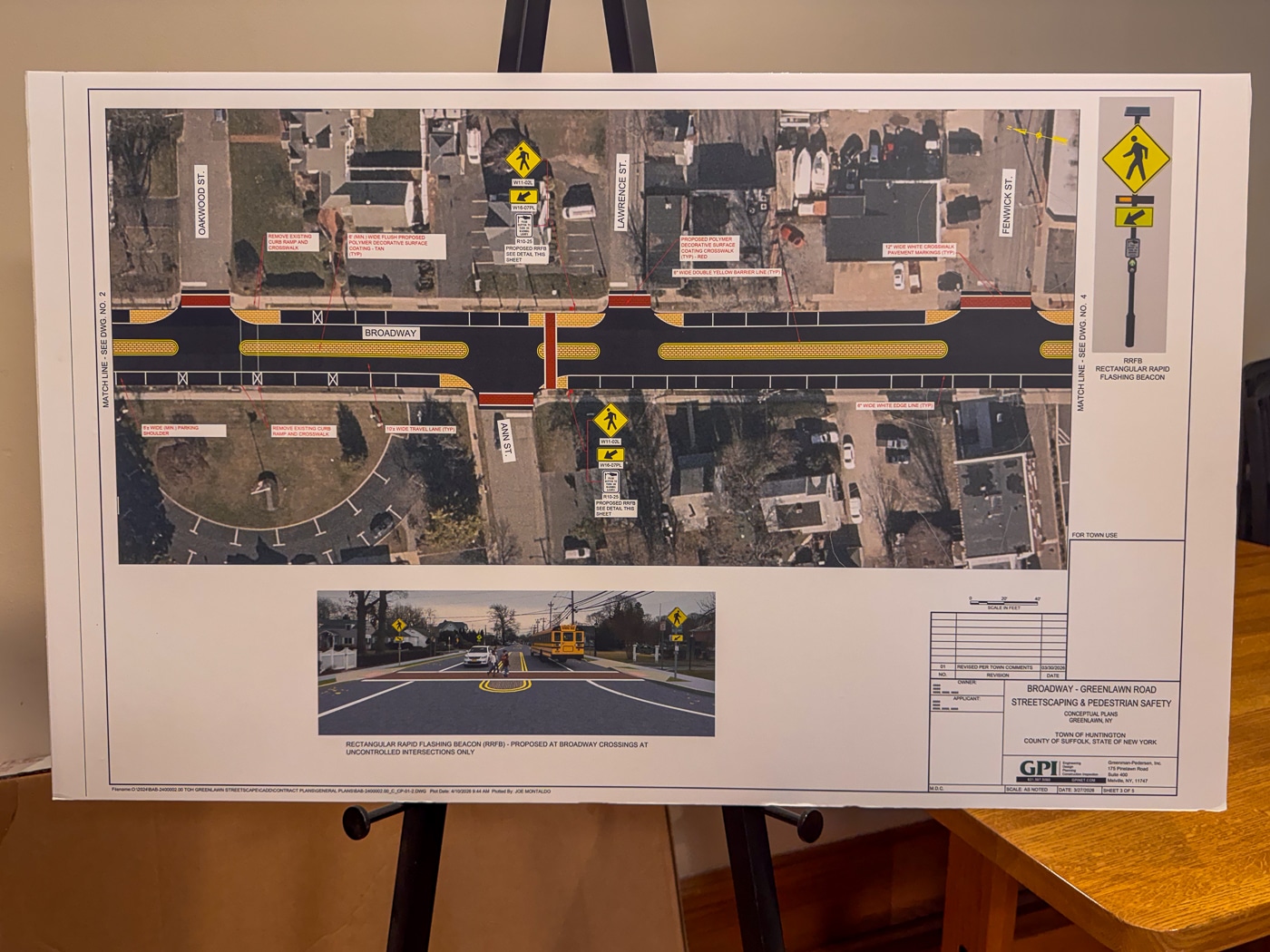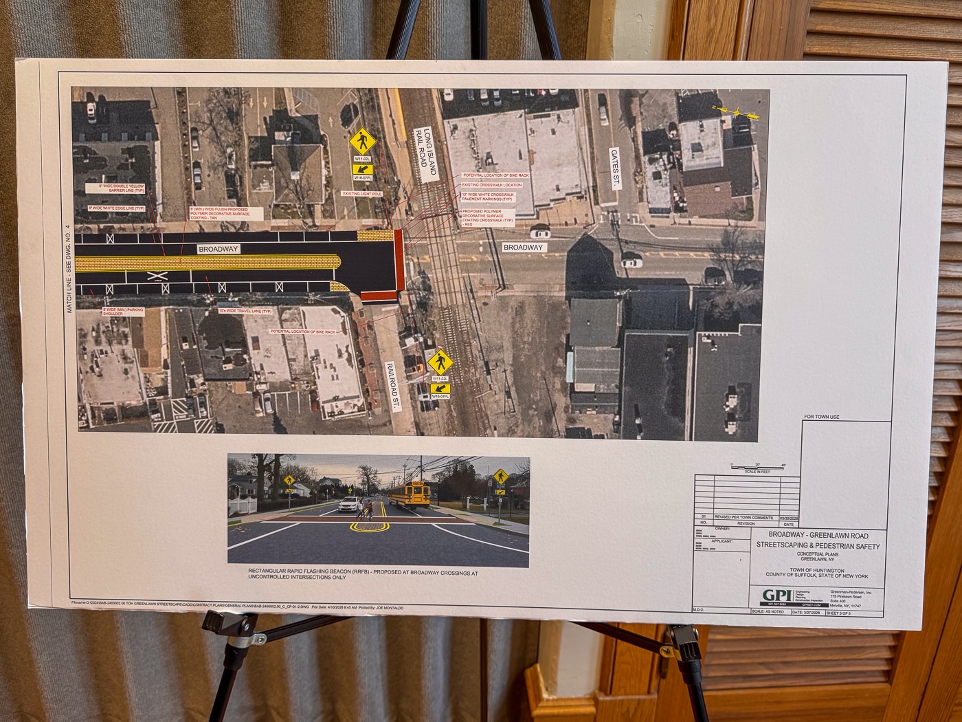 Residents gathered Monday evening at Harborfields Public Library for a public information meeting hosted by the Town of Huntington and the Greenlawn Civic Association, offering a detailed look at upcoming pedestrian and traffic safety improvements along Broadway.