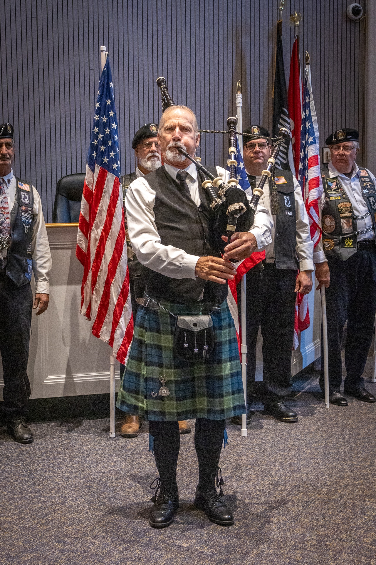A moment of Silence was observed followed by Louis DiLeo who sang God Bless America and Brad Davidson from the Northport Pipe & Drum who played Amazing Grace. After the benediction, Taps was played and the Colors Retired.